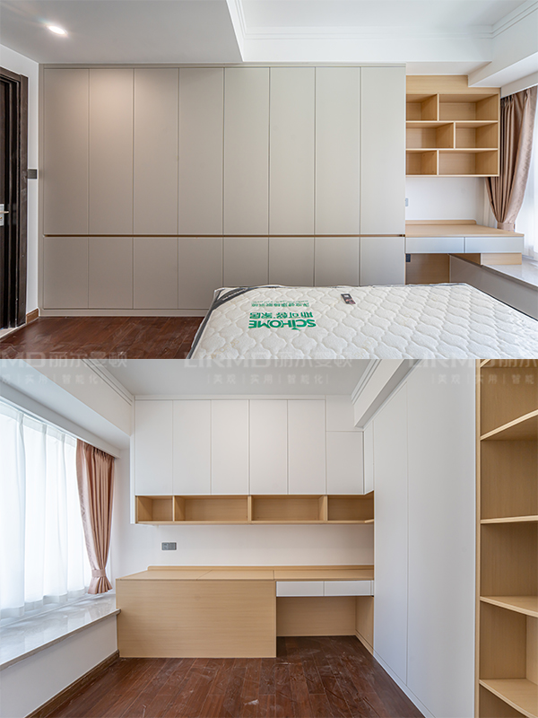 長沙靠譜裝修公司,長沙靠譜全屋定制,臥室衣柜加梳妝臺,北歐原木風,